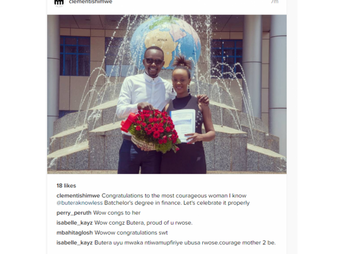 Ishimwe Clement, umugabo w’umuhanzikazi Butera Knowless, yamushimiye cyane umuhate n’imbaraga yagize mu masomo ye, kuri uyu wa Gatanu akaba yashyikirijwe impamyabumenyi y’icyiciro cya kabiri cya Kaminuza.