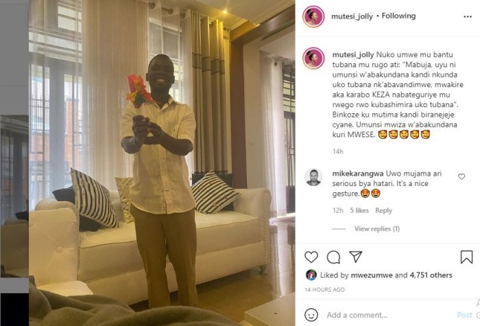 Jolly yagize ati “Binkoze ku mutima kandi biranejeje cyane. Umunsi mwiza w’abakundana kuri MWESE.”