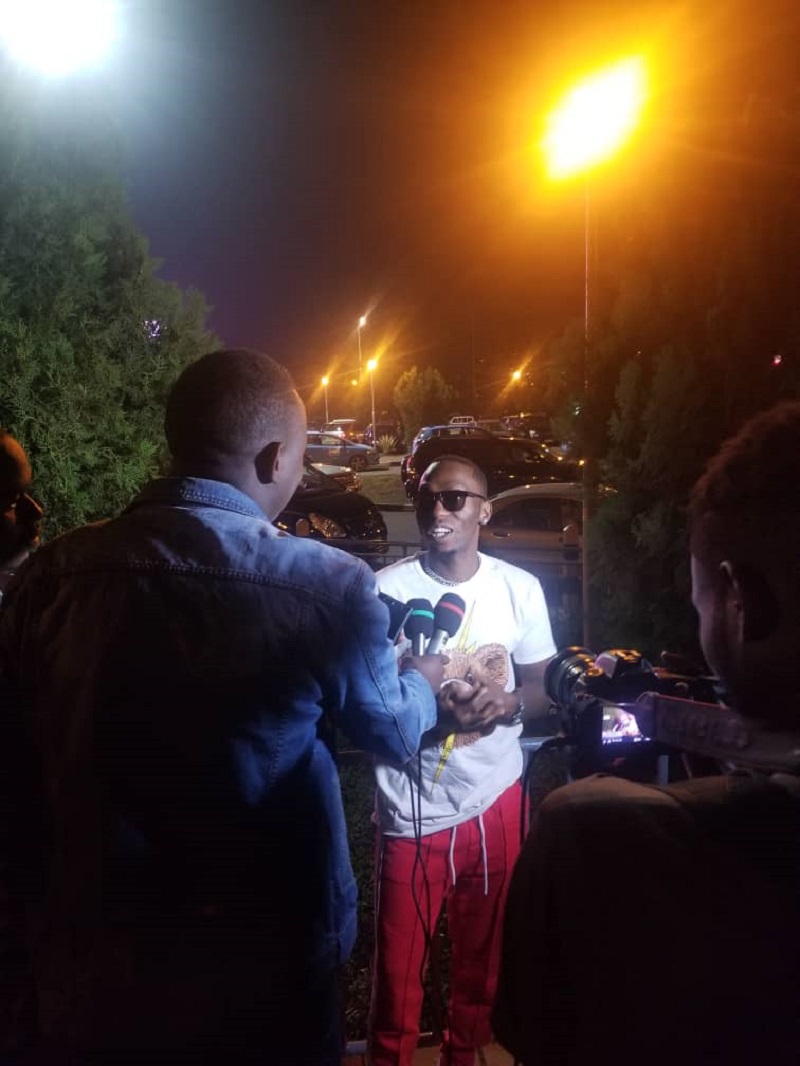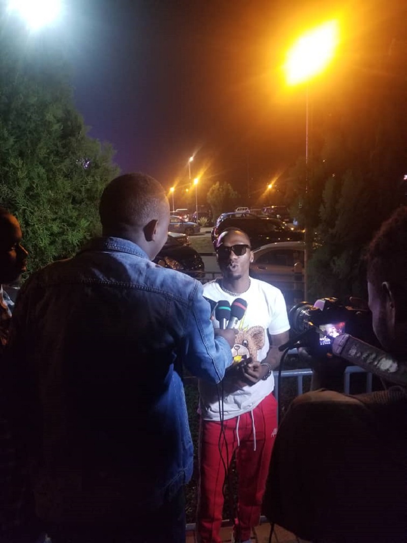 Rich Mavoko yageze ku kibuga mpuzamahanga cya Kigali, I Kanombe ku mugoroba wo kuri uyu wa Gatanu ahagana saa mbili n’igice yakirirwa n’ubuyobozi bwa The Mane Music Label yanateguye iki gitaramo.