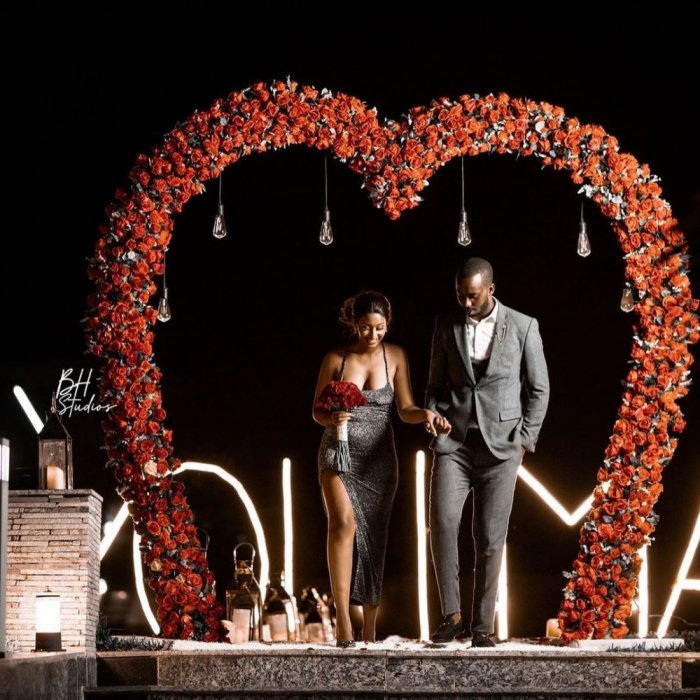Amashusho n’amafoto yacicikanye ku mbuga nkoranyambaga, yagaragazaga aba bombi basazwe n’ibyishimo bari ahantu hatase bidasanzwe nyuma yo kumwambika iriya mpita isanzwe izwi nka Fiancaille.