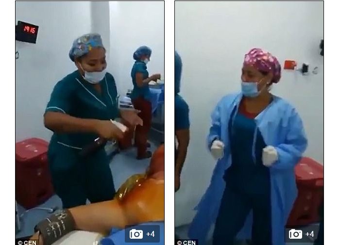 Iri tsinda ry’aba baganga bagaragaye barimo kubyina bikomeye baseka cyane basa n’abibagiwe ko bari imbere y’umurwayi wari utegereje ko bamurwanaho cyane ko yari yanagejejwe ku gitanda aho yari yambaye ubusa ategereje kubagwa.