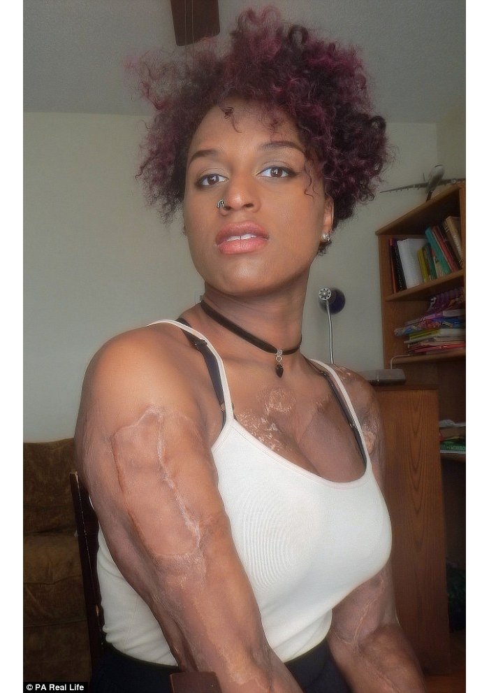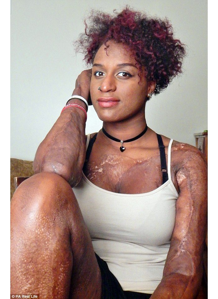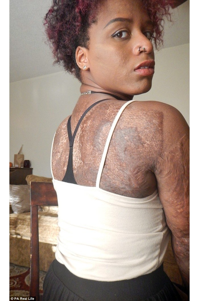 Alexandra Hollingsworth, agaragaraho inkovu nyinshi z’ubushye yagize mu myaka yashize, zigatwara igice kinini cy’uruhu rwe ndetse agakorerwa ibikorwa byihariye by’ubuvuzi (Operations) inshuro zirenga 20 kugirango abashe kongera gusubirana isura ya kimuntu. Guhera ku isura, amaguru, amaboko, umugongo, inda n’ibindi bice by’umubiri we, atunzeho uruhu rw’abantu atazi ndetse batakinariho kuko uruhu rwe rugera kuri 52% yaruhawe n’abaganga barukuye ku bandi bantu babaga bapfuye.