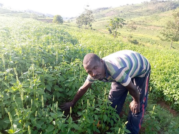 Dusabimana Pasiteur utuye mu Mudugudu wa Nkenke we avuga ko yahinze Chia kuri hegitari imwe n’igice bakaba bamufitiye umwenda hafi wa miliyoni 3 Frw, kongeraho undi musaruro urenga toni abitse mu rugo.