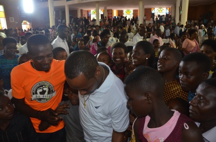 Kizito Mihigo weretswe urukundo rwinshi n’abakirisitu bitabiriye iki gitaramo, yababwiye ko yishimiye kuba ari bo ba mbere ataramiye kuva yafungurwa. Uyu muhanzi ariko yanasabye iyi mbaga kumusabira no kujya basabira abantu bafatwa nk’ibyamamare kuko ngo ubuzima babamo buba butoroshye, Kizito ati : "Nimubona umuntu abantu benshi bakomera amashyi mujye mumusabira cyane mumusengere."