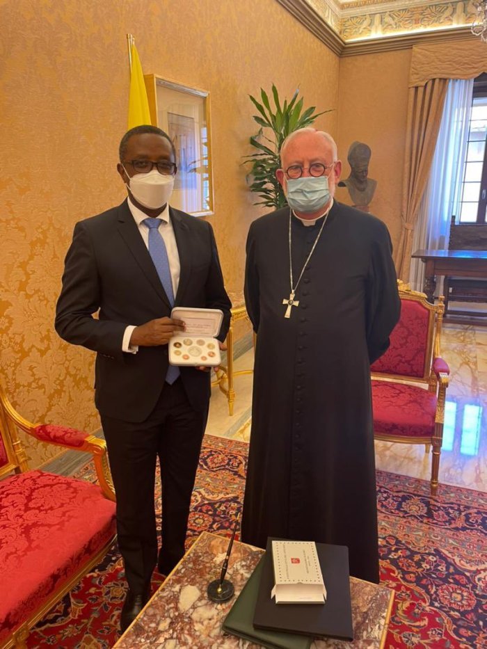 Dr Vincent Biruta, Minisitiri w’Ububanyi n’Amahanga n’Ubutwererane, yagiye i Vatican aho yakiriwe na Arikiyepisikopi wa Vatican, Paul Richard Gallagher, baganira ku gukomeza kuzamura umubano hagati ya Leta y’u Rwanda na Kiliziya Gatulika.