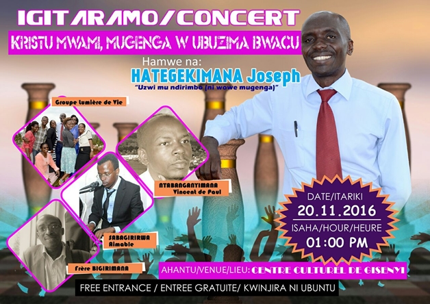 Kuri icyi cyumweru rero, tariki ya 20 Ugushyingo 2016, kuri Centre socio-culturel Gisenyi aho azafatanya n’abahanzi bamaze kubaka izina muri Kiliziya gatorika harimo NTABANGANYIMANA Vincent de Paul, SEBAGIRIRWA Aimable na Group Lumiere de Vie ari nayo uyu UKURI Jean Claude (Verite) uririmba Hip Hop abarizwamo, yabateguriye igitaramo cy’imbaturamugabo aho kwinjira bizaba ari ubuntu.