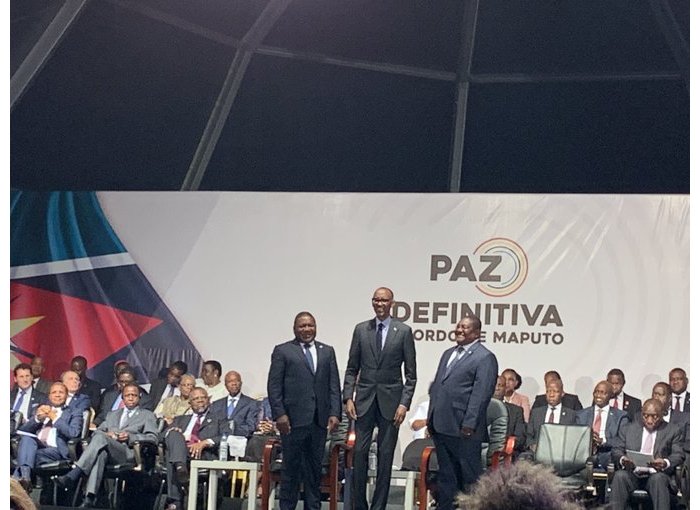 Perezida w’ u Rwanda Paul Kagame kuri uyu wa Kabili yakurikiranye umuhango wo gusinya amasezerano y’ amahoro n’ ubwiyunge hagati ya guverinoma ya Mozambique n’ abo mu ishyaka RENAMO ryahoze ari umutwe urwanya Leta y’ iki gihugu yizeza Mozambique ubufatanye.