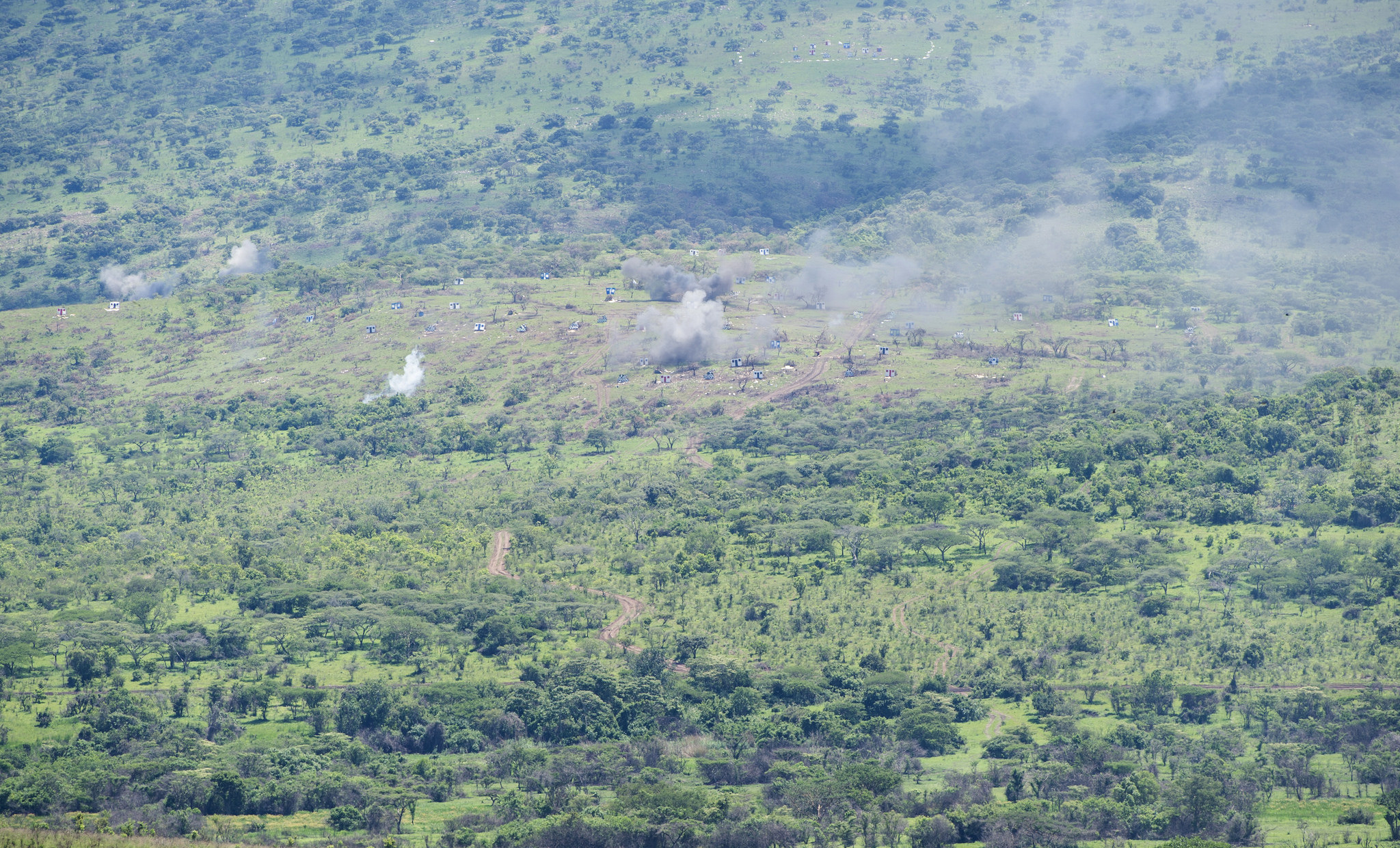 Aha mu kigo cy’imyitozo cya gisirikare, Perezida Paul Kagame yafashe umwanya wo kugenzura no kwirebera uko abasirikare bakoresha ibikoresho bya gisirikare bitandukanye mu buryo bukomatanyije, hanyuma anagirana ibiganiro n’abayobozi bakuru b’ingabo z’u Rwanda.