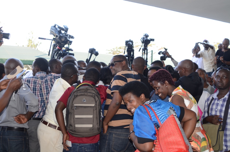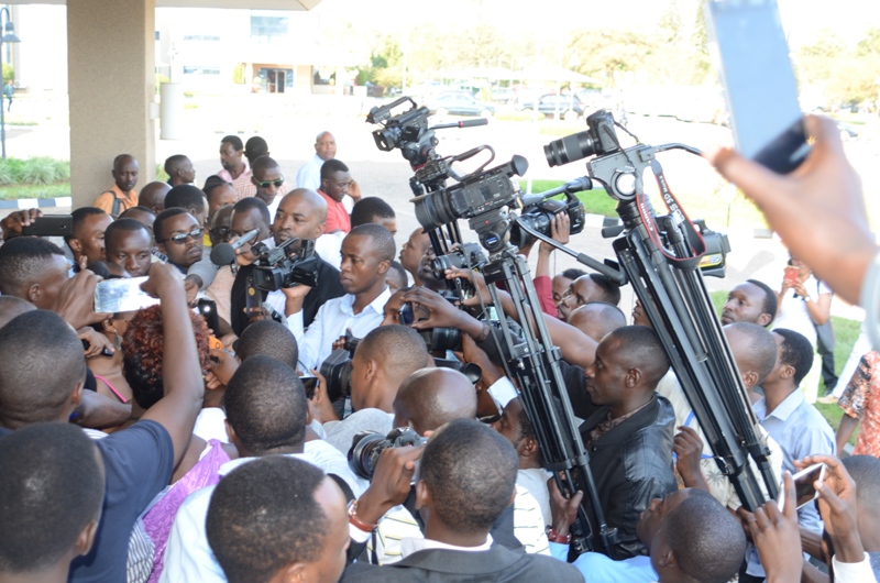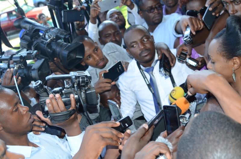 Diane Shima Rwigara, umukobwa umwe rukumbi mu matora ya Perezida wa Repubulika akaba n’umukobwa umwe mu mateka y’u Rwanda wagerageje kwiyamamariza uyu mwanya, yageze muri Komisiyo y’amatora ahagana saa cyenda z’amanywa, maze mu gusohoka asanga imbaga y’abanyamakuru bo mu Rwanda n’abakorera ibinyamakuru mpuzamahanga bamutegereje, kuburyo kubasha kuganira nawe byabaye intambara ikomeye kuri bamwe.
