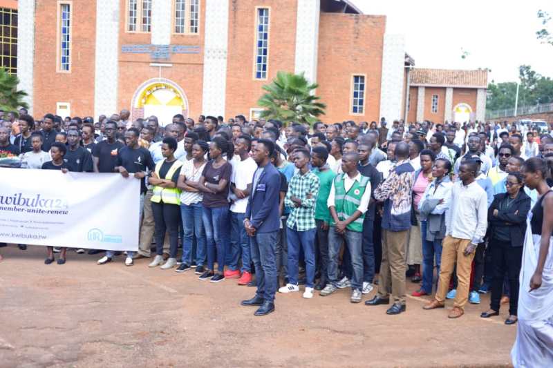 Abayobozi batandukanye barimo n’abayobozi ba UR bafatanyije n’abanyeshuri ba CST kunamira abatutsi bazize Jenocide muri Mata 1994