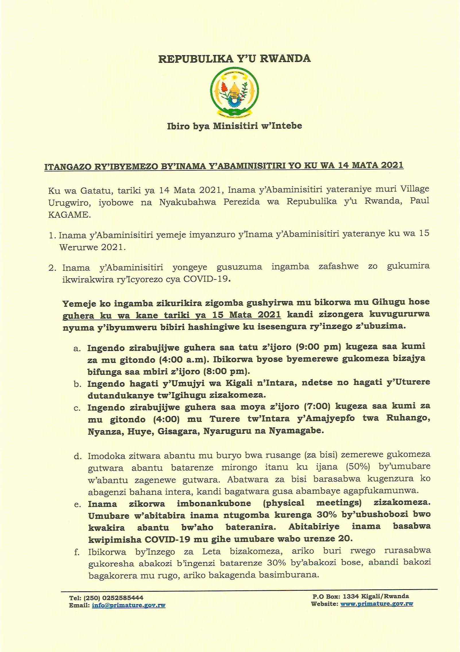 SOMA IBINDI BYEMEZO BY’INAMA Y’ABAMINISITIRI BIREBANA N’INGAMBA ZO KWIRINDA COVID