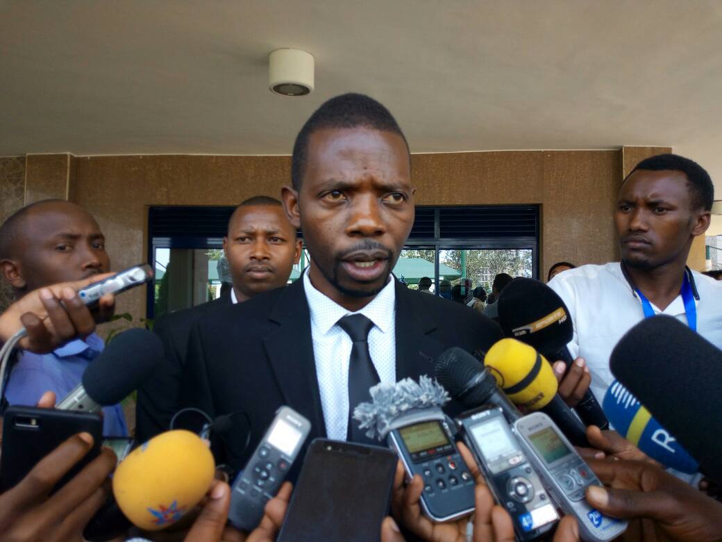 Mpayimana aganira n’abanyamakuru nyuma yo kuva muri Komisiyo