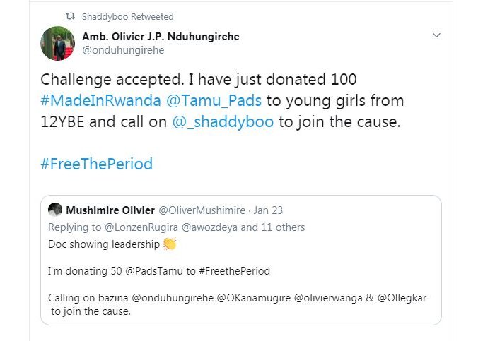 Ubu bukangurambaga bwa #freetheperiod buri gukorerwa ku rubuga nkoranyambaga rwa Twitter, bugamije guha ibyo bikoresho by’isuku abana b’abakobwa biga mu mashuri yisumbuye bageze mu gihe cyo kujya mu mihango ariko bakabura ibikoresho by’isuku kuko bihenze kuri bamwe.