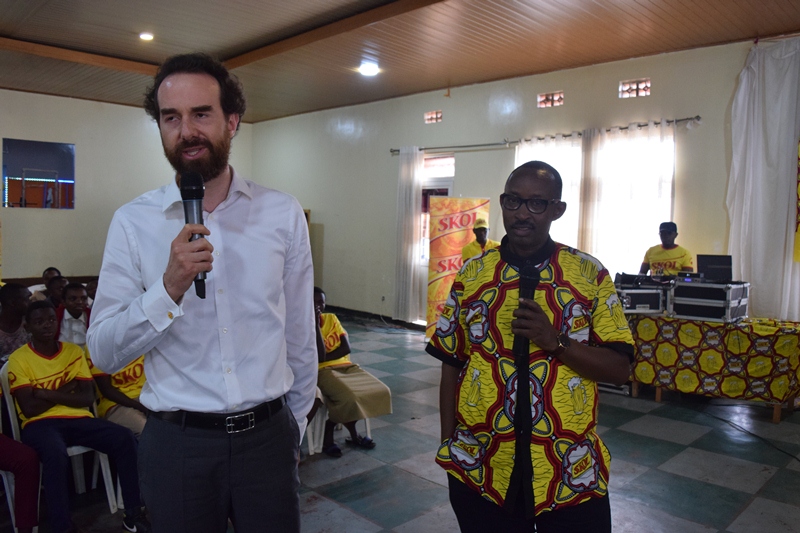 Thibault Relecom na Tite Gatabazi, umwe mu bayobozi bakuru ba Skol mu Rwanda