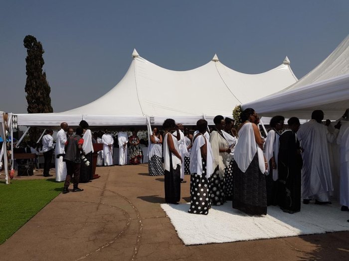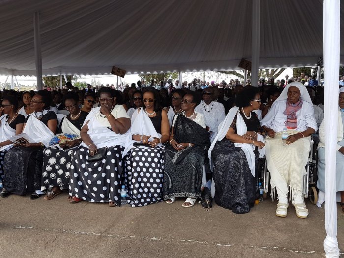 Abantu benshi biganjemo abasheshe akanguhe bitabiriye imihango yo gutabariza umugogo wa Kigeli