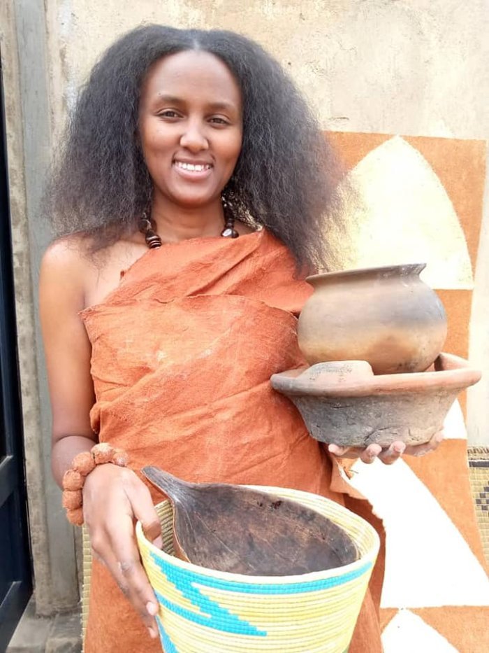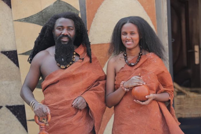 Umupfumu akaba n’umuganga Rutangarwamaboko yizihije Umunsi w’Umuganura mu buryo bw’imibereho yo hambere haba ibiribwa bariye ndetse n’imyambaro bari bambaye we n’umugore we ndetse n’abana babo.