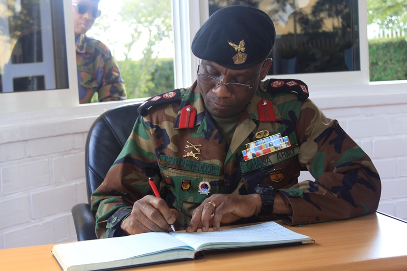 Uhagarariye iri tsinda, Col. Winfried Dzanda Hedidor, yasinye mu gitabo cyagenewe abashyitsi
