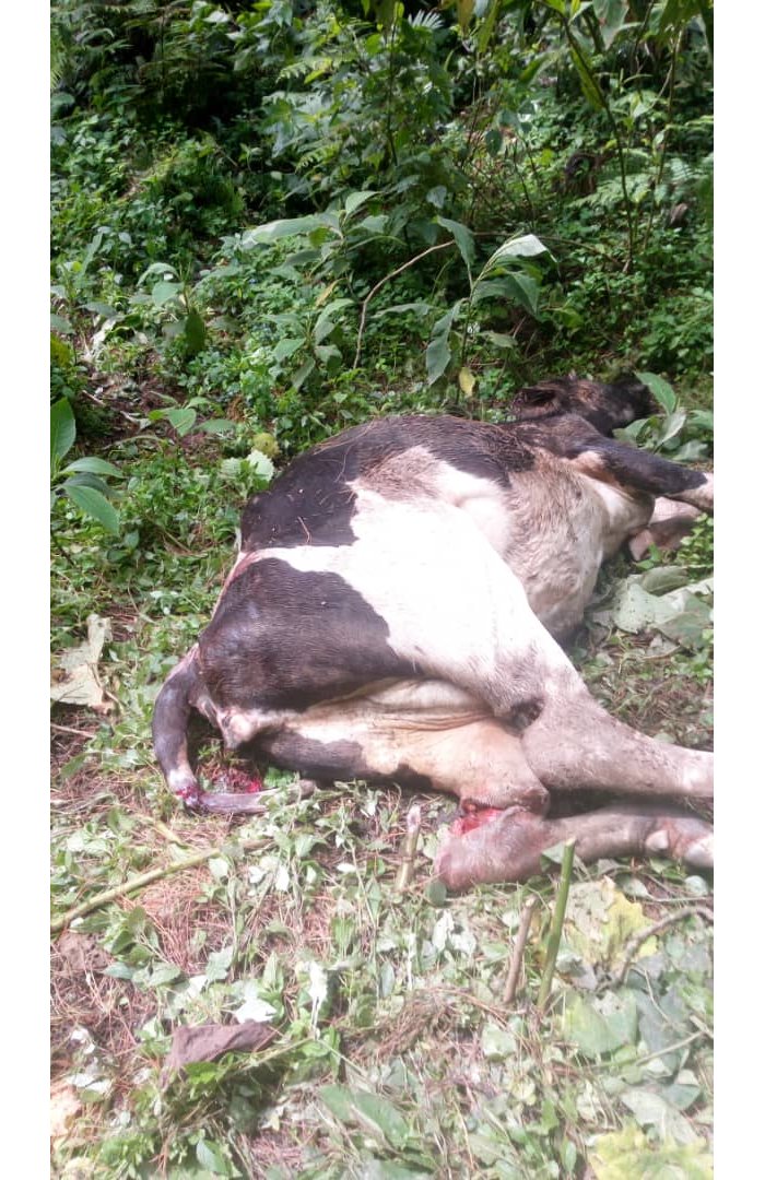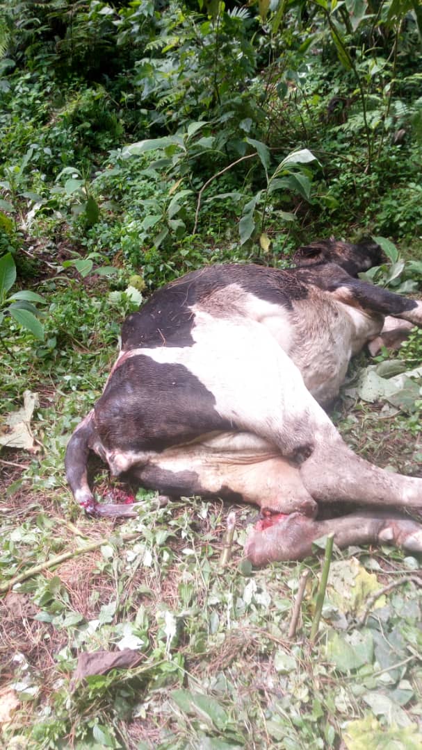 Antoinette Mukandayisenga, Umuyobozi w’Akarere ka Nyabihu yavuze ko Ndabarinze Kabera yari yasize inka ze muri icyo gikumba kiri muri Gishwati arataha ariko mu gitondo cyo kuri uyu wa Mbere asanga zatemwe bikomeye.