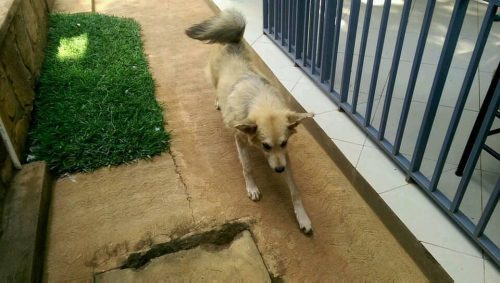 Iyi mbwa ni German shepherd mixed with golden retriever , imaze amezi 8, irakingiye kandi ifite imico myiza.