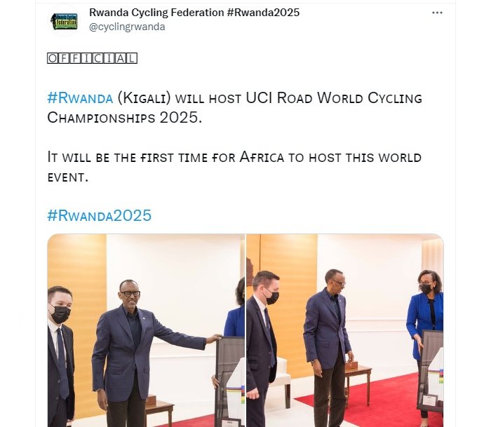 Impuzamashyirahamwe y’Umukino w’Amagare ku Isi yemeje ko u Rwanda ruzakira Shampiyona y’uyu mukino ya 2025 bituma iki Gihugu kiba icya mbere ku mugabane wa Africa kiyakiriye.