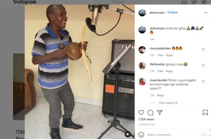 Mu mashusho yashyizwe ku mbuga nkoranyambaga n’usanzwe areberera inyungu ze, Alain Mukurarinda, agaragaza Igisupusupu asa nk’usubiramo indirimbo yamaze gufatwa amajwi.