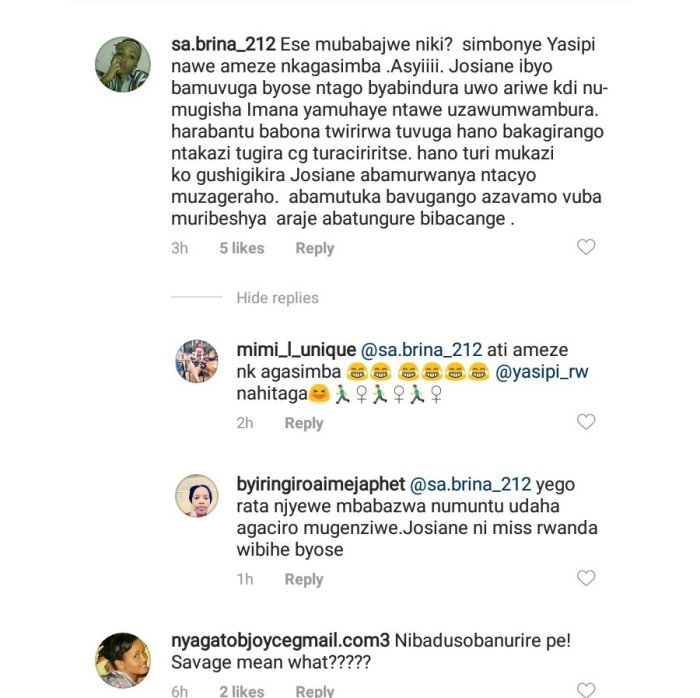 Iyi foto ikimara kugaragara kuri instagram ya Uwihirwe Casmir Yasipi wambara numero 21 muri Miss Rwanda 2019 abakunzi ba Mwiseneza bahise batangira kwibasira uyu mukobwa Uwihirwe.