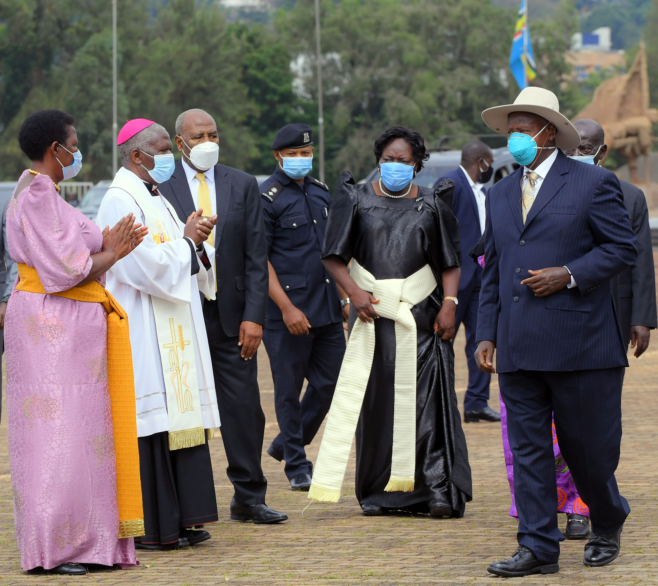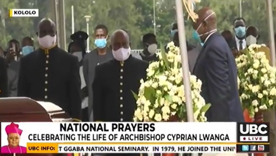 Perezida Yoweri Kaguta Museveni wa Uganda yagiye mu muhango wo gusezera kuri Dr. Cyprian Kizito Lwanga wari Arikiyepisikopi wa Kampala uherutse gusangwa yapfiriye mu nzu aho yabaga.