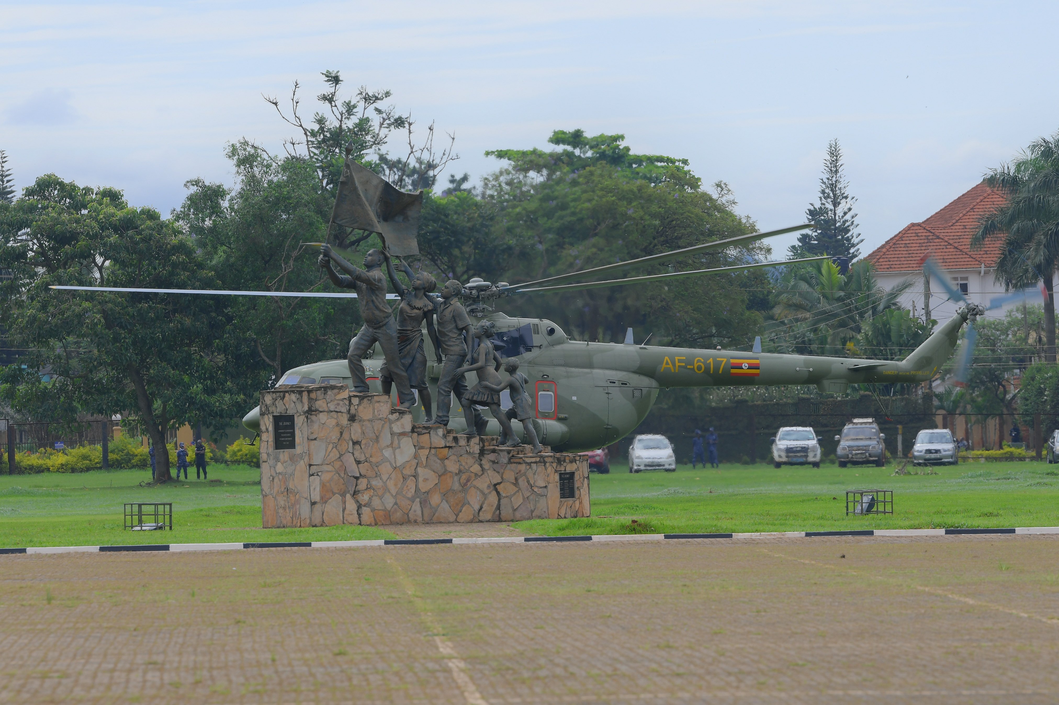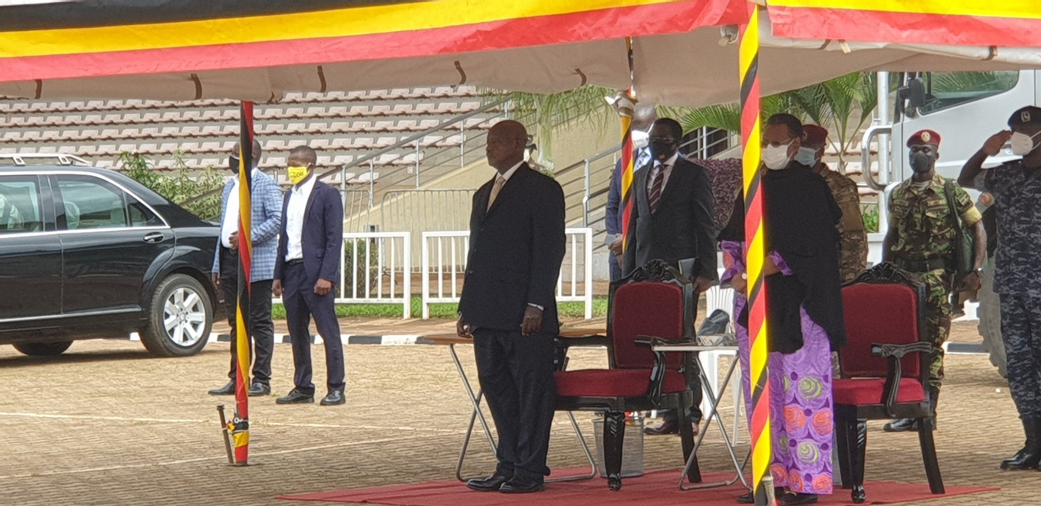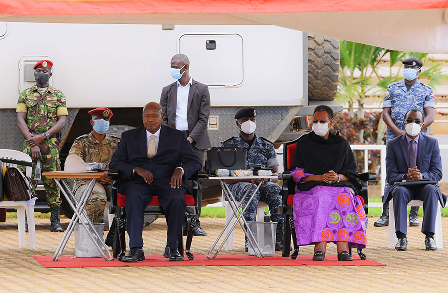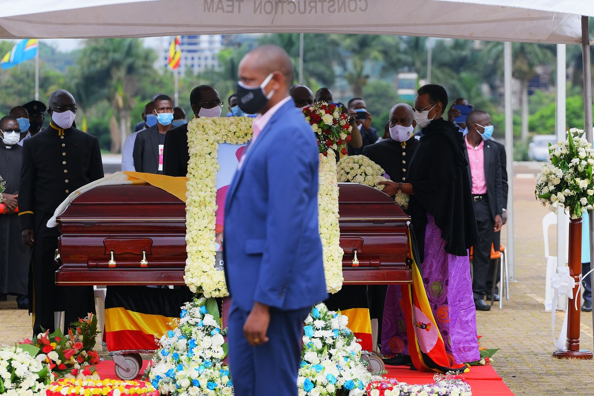 Perezida Yoweri Kaguta Museveni na Madamu Janet Museveni, bagiye mu gikorwa cyo gusezera kuri Dr. Cyprian Kizito Lwanga cyabereye mu gace kitwa Kololo muri Uganda.