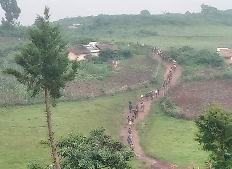 Uyu kandi yanagaragaje ifoto y’abarwanyi batonze umurongo, bagaragara nk’abikoreye imizigo ndetse n’intwaro.