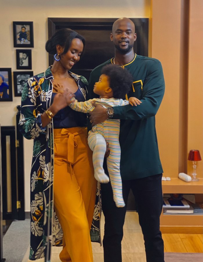Ubu butumwa yashyize kuri Twitter, buherekejwe n’ifoto ari kumwe n’umugabo we Bertrand Ndengeyingoma bateruye imfura yabo.
