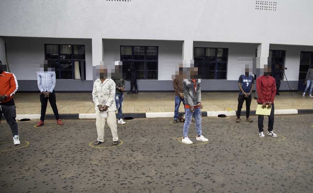 Polisi y’u Rwanda yerekanye abantu 9 bakurikiranyweho guhisha pulake za moto bagamije kujijisha camera ngo zitabandikira mu gihe umwe muri bo yavuze ko atari azi ko plaque y’ikinyabiziga ye yasibwe.