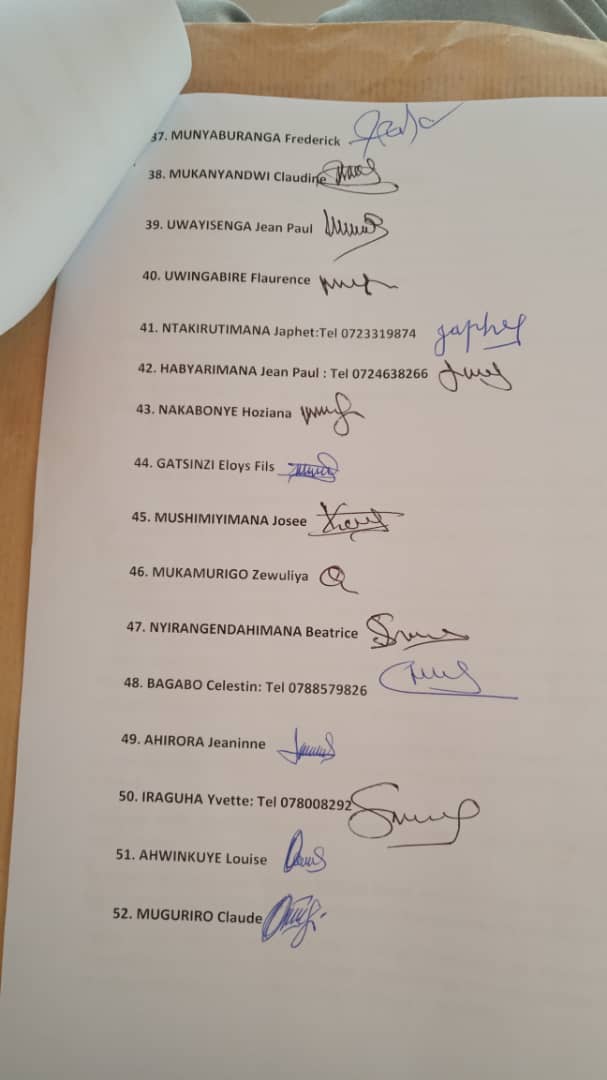 Ibaruwa bamwe mu bakirisito ba paruwasi ya Cyegera bandikiye RGB yasinyweho n’ abakirisito 52 nk’ uko bigaragara ku rwandiko dufitiye kopi.