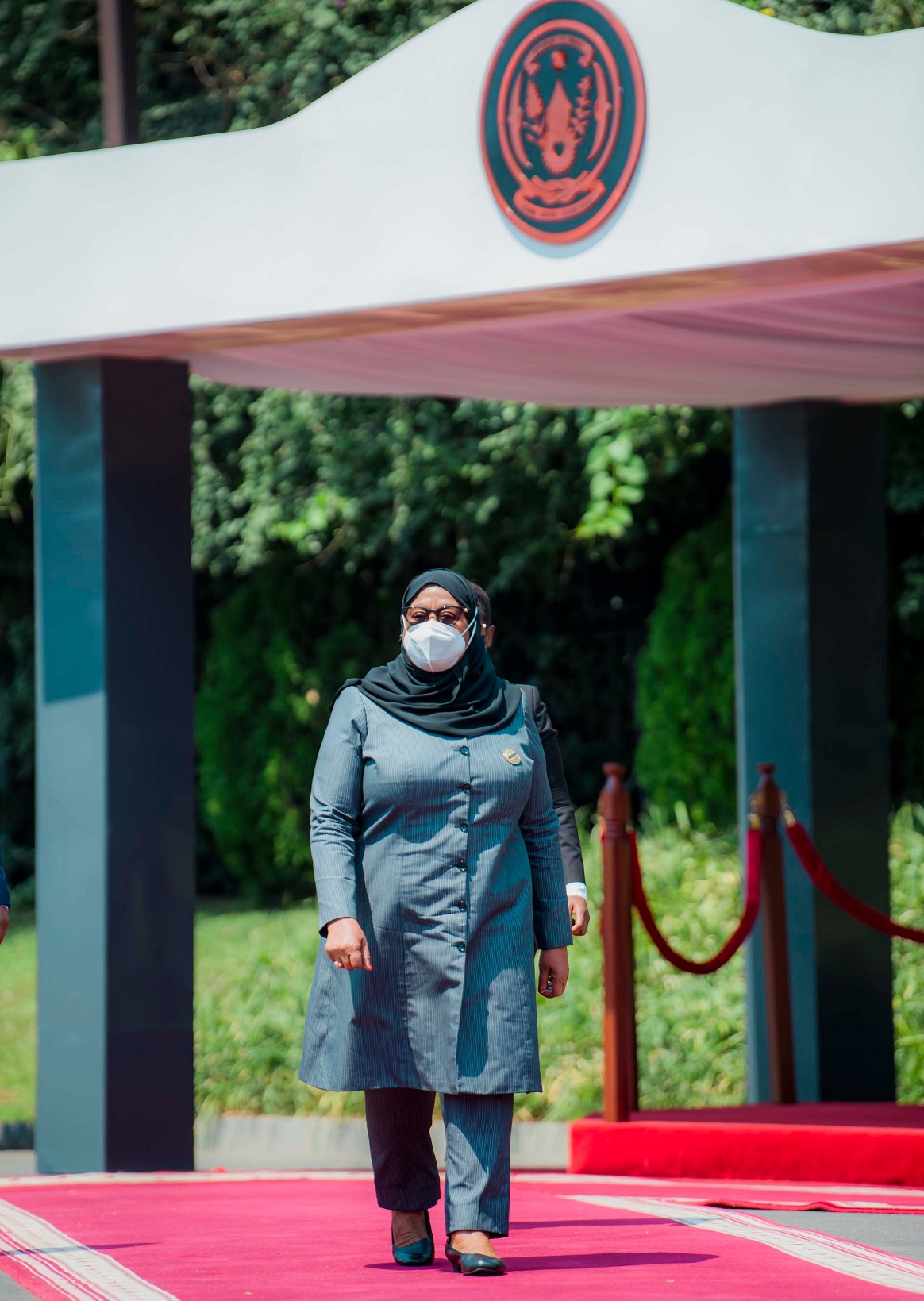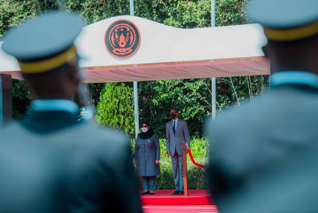 Ni umuhango wabimburiwe n’akarasisi kanogeye ijisho ko kwakira Madamu Samia Suluhu wageze ku Kibuga cy’Indege i Kanombe mu gitondo cyo kuri uyu wa Mbere akakirwa na Minisitiri w’Ububanyi n’Amahanga n’Ubutwererane Dr Vincent Biruta.