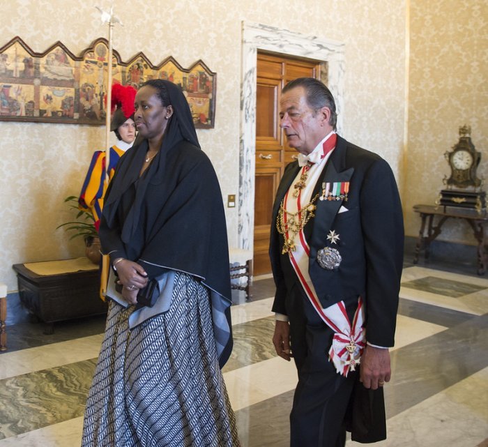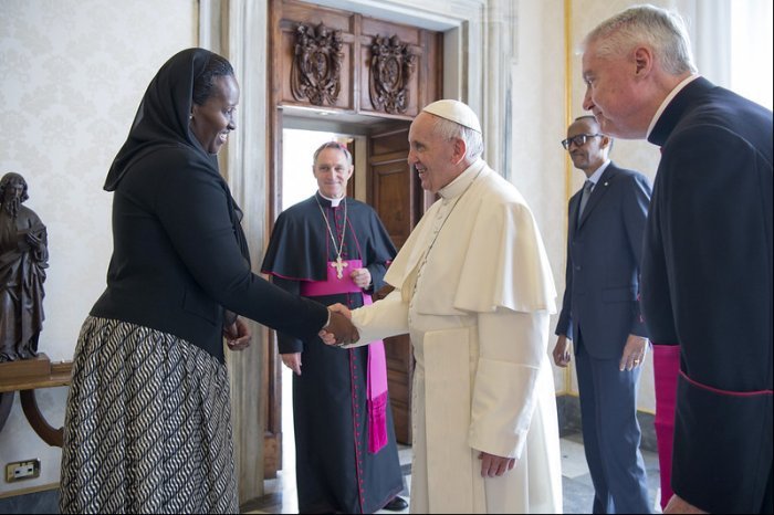 Minisitiri w’Ububanyi n’amahanga akaba n’umuvugizi wa Leta y’u Rwanda, Louise Mushikiwabo wajyanye na Perezida Kagame i Vatican, asobanura iby’ibiganiro Perezida w’u Rwanda yagiranye na Papa Francis yagize ati : "Perezida Kagame na Papa Francis baganiriye ku bintu bitandukanye bijyanye n’imibanire y’u Rwanda na Kiliziya Gatolika. Perezida yashimiye Kiliziya uruhare igira mu iterambere ry’ubukungu n’imibereho myiza y’abaturage b’u Rwanda, by’umwihariko mu burezi no mu buzima."