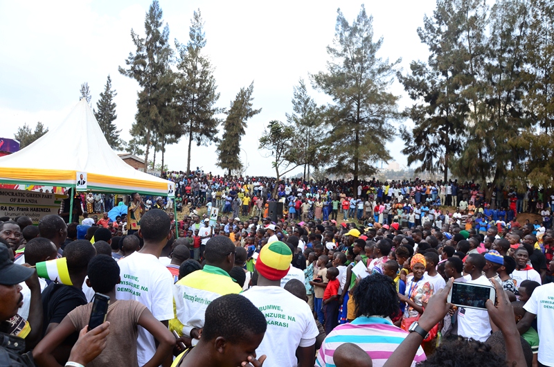 Abiganjemo abazunguzayi bifuza ko caguwa igaruka mu Rwanda baje kumva imigabo n’imigambi y’umukandida w’ishyaka Democratic Green party Dr. Frank Habineza ubwo yasorezaga ibikorwa bye byo kwiyamamamaza mu gace ka Nyabugogo.