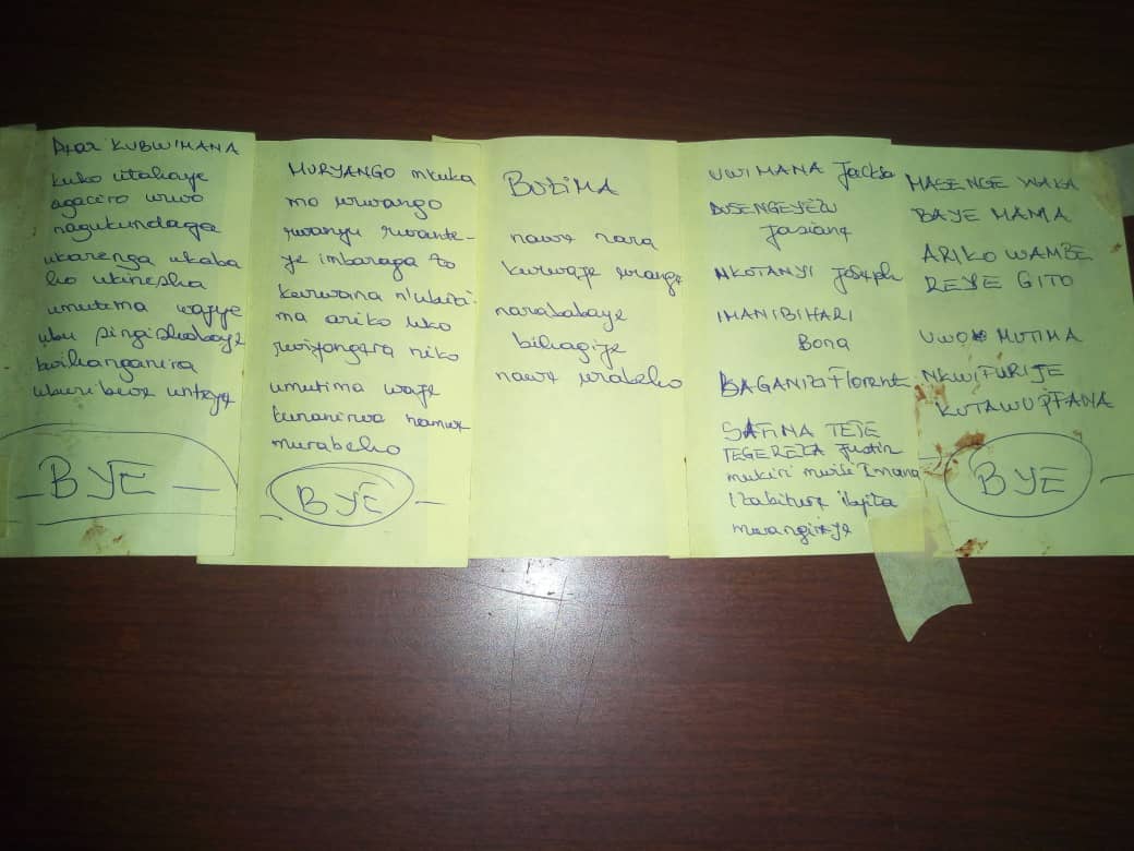 Uyu mukobwa wasimbutse etage kuri uyu wa 6 Nzeri 2019 agakomereka bikomeye yasize yandikiye Kubwimana ati “Dear Kubwimana kuko utahaye agaciro urwo nagukundaga ukarenga ukabaho ukinisha umutima wanjye ubusingishoboye kwihanganira uburibwe unteye- BYE-