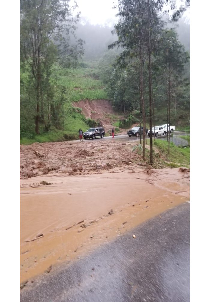 Imvura yaguye mu ijoro ryakeye yatumye umugezi wa Nyamutera uca mu Murenge wa Rugera muri @NyabihuDistrict wuzura ucamo kabiri umuhanda munini Musanze-Vunga- Muhanga.