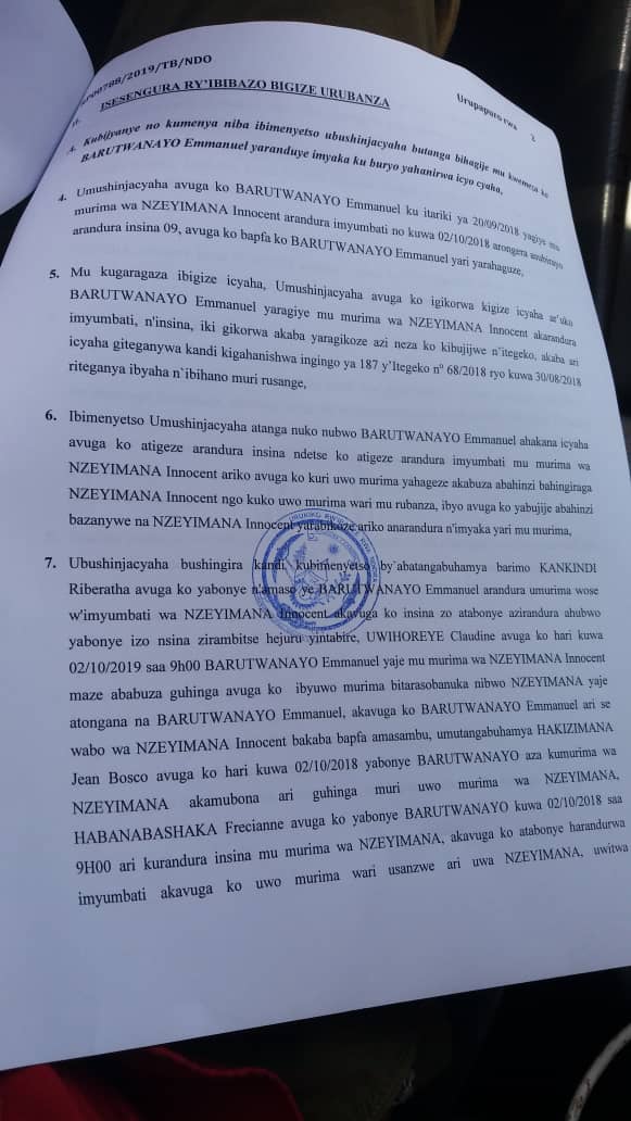 Nzeyimana Innocent avuga umunyamabanga Nshingwabikorwa w’ akagari ka Rusagara Ndayishimiye Jean de Dieu afatanya na Mudugudu Barutwanayo kurenganya abaturage. Ibi ngo abishingira ku kuba Ndayishimiye yaremeje ko Barutwanayo yaranduye imyumbati y’ amahunge n’ insina bye nyuma akongera akandikira urukiko abivuguruza.