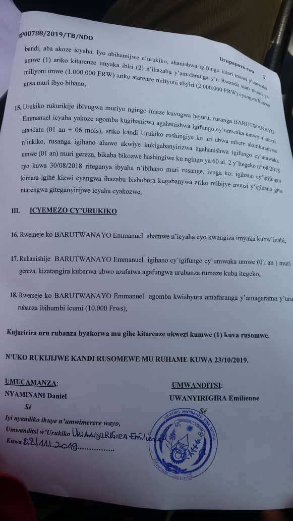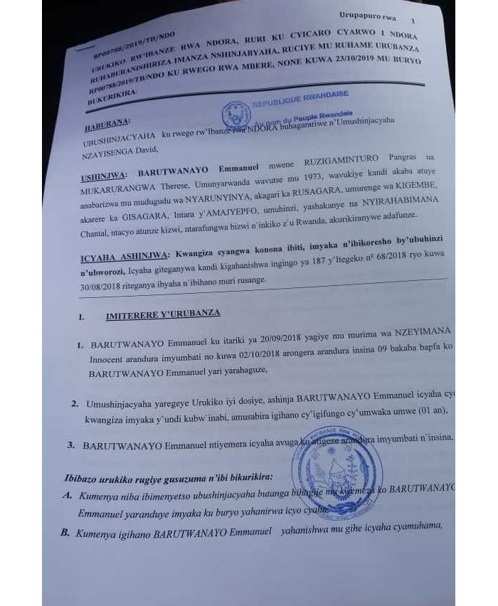 Urukiko rwemeje ko Barutwanayo yaranduye imyaka ya Nzeyimana rumukatira gufungwa umwaka