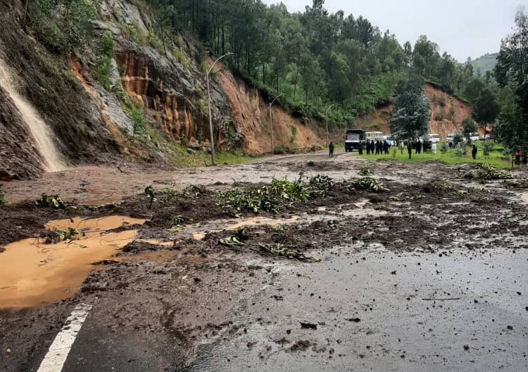 Muri ubu butumwa, Polisi y’u Rwanda, yagize ati “Turabamenyesha ko kubera imvura nyinshi yateye inkangu mu Murenge wa Gishyita, ubu umuhanda Karongi-Nyamasheke wabaye ufunze by’agateganyo.”