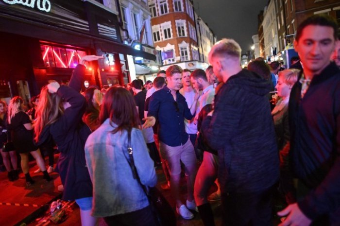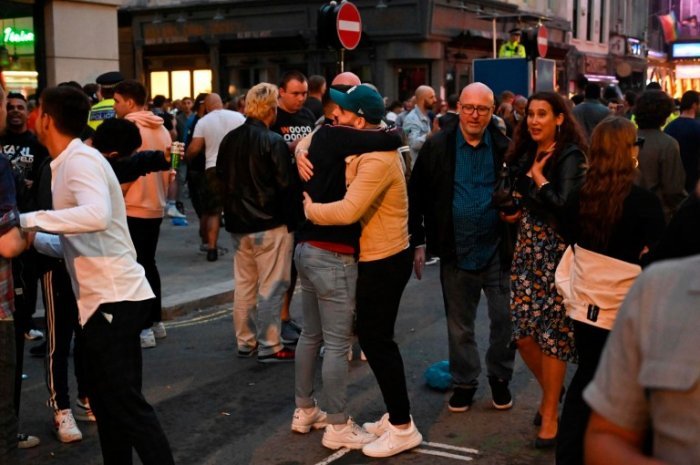 Ibihumbi by’abaturage birunze mu mihanda bimeze nk’amarumbo y’inzuki ubwo Leta y’Ubwongereza yoroshyaga gahunda ya guma mu rugo igafungura utubari, abenshi baragaraye basinze abandi biminura ibirahure bya za likeri.