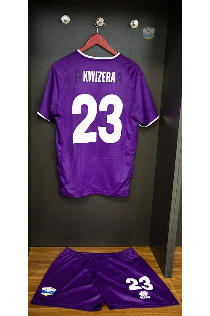 Iyi myambaro ikorwa n’uruganda Errea rusanzwe rufitanya amasezerano y’imikoranire na Minisiteri ya Siporo, ni iyo mu mwaka w’imikino wa 2017-2018 mu gihe uru ruganda rusohora imyambaro buri mwaka.