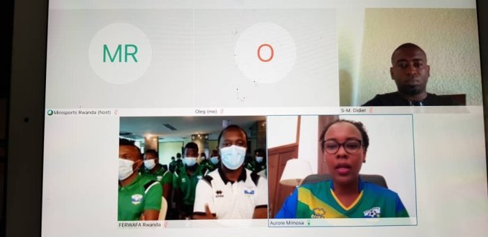 Ni mu kiganiro Aurore Mimosa Munyangaju yagiranye n’abakinnyi ndetse n’abatoza n’abayobozi b’Amavubi hifashishijwe Ikoranabuhanga ry’iya kure.
