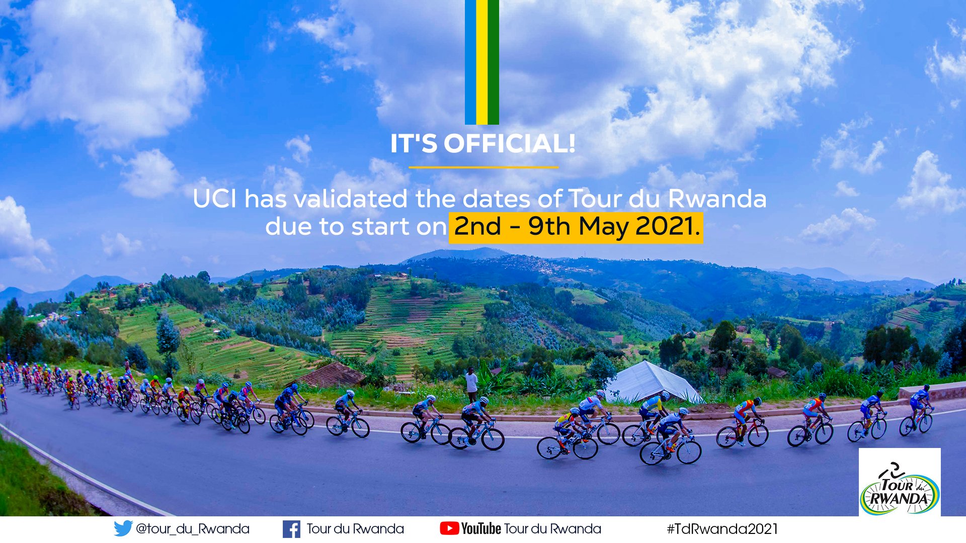 Ubutumwa bwatambutse kuri Twitter, bugira buti “Turabamenyesha ko UCI yemeye amatariki mashya mashya ya Tour du Rwanda, ni hagati ya tariki 02-09 Gicurasi 2021.”