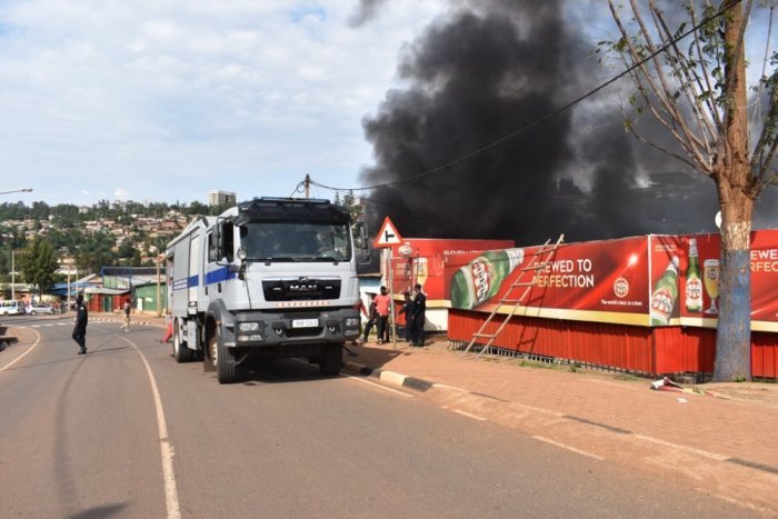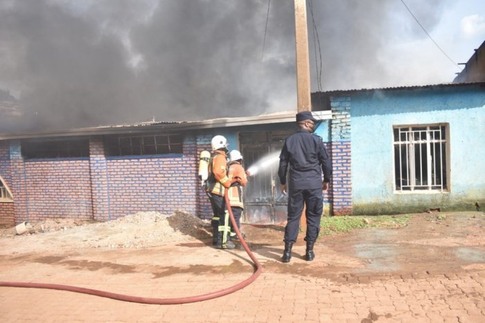 Iyi nkongi ikimara gufata iri garaje, Polisi yahise izana imodoka zo kuzimya umuriro zitangira akazi kazo.