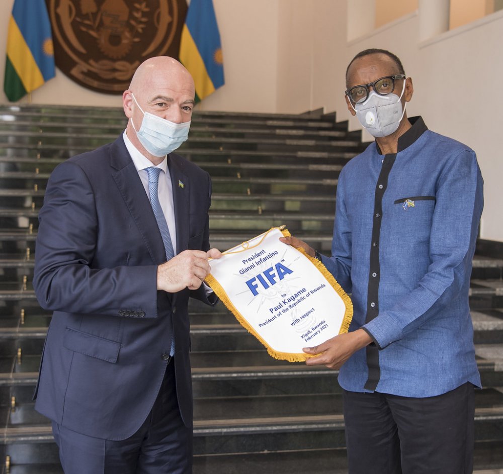 Kuri uyu wa Gatanu tariki 19 Gashyantare 2021, Perezida Kagame yakiriye mu biro bye Perezida w’Impuzamashyirahamwe y’Umupira w’Amaguru (FIFA), Gianni Infantino wanamushyikirije impano zirimo T-shirt ya nimero 9 isanzwe yambarwa na ba rutahizamu.
