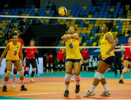 Abakobwa bane Aline Siqueira, Apolinario Caroline Taiana, Mariana Da Silva na Moreira Bianca Gomes bakomoka muri Brésil bakinishijwe mu gikombe cya Afurika cy’Abagore cya 2021 mu mukino wa volleyball ni bo batumye Ishyirahamwe ry’Umukino wa Volleyball mu Rwanda (FRVB) ricibwa aya mande.